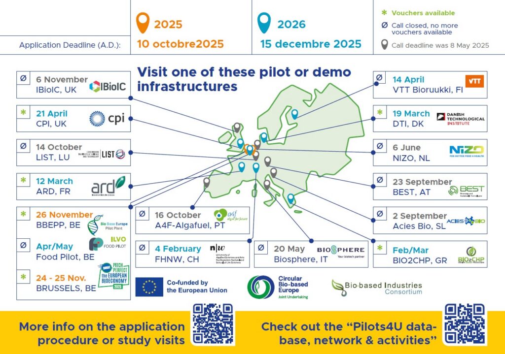- 26 November 2025: Bio Base Europe Pilot Plant, Belgium***; study visit follows the Pitch Perfect and Boost the European Bioeconomy 2025 event in Brussels on 24/25 November 2025.